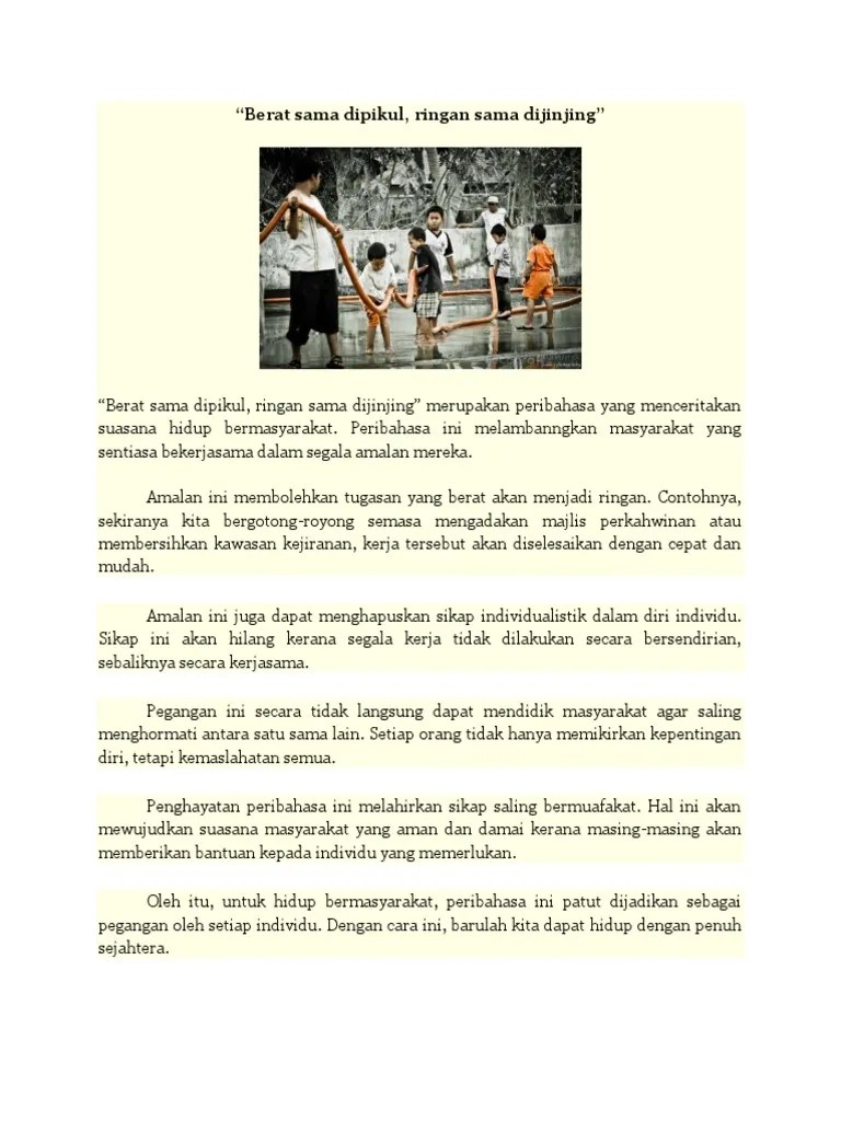 Senarai peribahasa dan maksud untuk pepatah melayu berlainan cikgu zamrud. Walaupun tugas itu sangat berat, namun jika kita. 19) bukit sama didaki, lurah . Sebutkan peribahasa yang sesuai dengan gotong royong dan jelaskan artinya. Lencana tidak terkunci yang menunjukkan sepatu bot astronot . Sikap penduduk di taman itu yang selalu berbincang . Peribahasa kerjasama dan gotong royong. Mengikut adat dan cara kehidupan yang diamalkan mengikut tempat yang kita berada. A.kita hendaklah bekerjasama bagai aur dengan tebing untuk menangani gejala. Senarai peribahasa dan maksud untuk pepatah melayu berlainan .